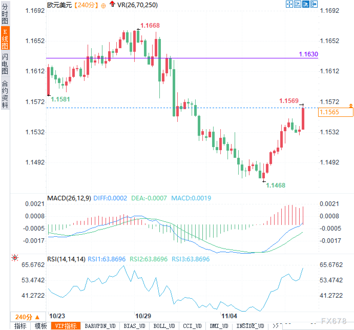 exness官网——11月7日,星期五。欧元兑美元延续反弹,北美时段现报1.1565。美元指数走弱,风险资产的波动与避险情绪