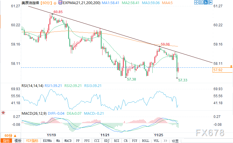 汇通财经APP讯——周二(11月25日)欧盘时段,WTI原油价格走软,市场呈现典型的假期前交易特征:成交量稀薄、波动震荡,投资者不愿大举押注。上周五油价触及57.38美元/桶(10月末以来最低水平)后,期货价格逐步回升。尽管脱离近期低点,但反弹力度缺乏明确动能支撑。