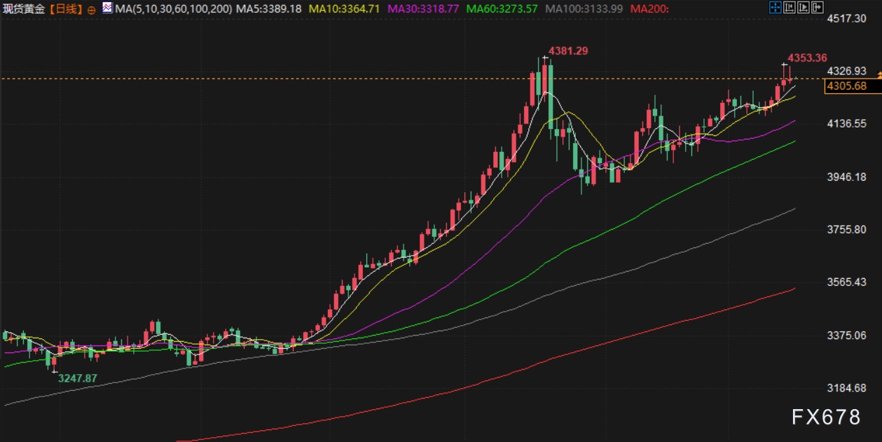 受地缘政治紧张局势出现缓和迹象影响,金价周一收窄日内涨幅。现货黄金最终收于每盎司4304.91美元,日内上涨0.11%,较盘初超过1%的涨幅明显回落。